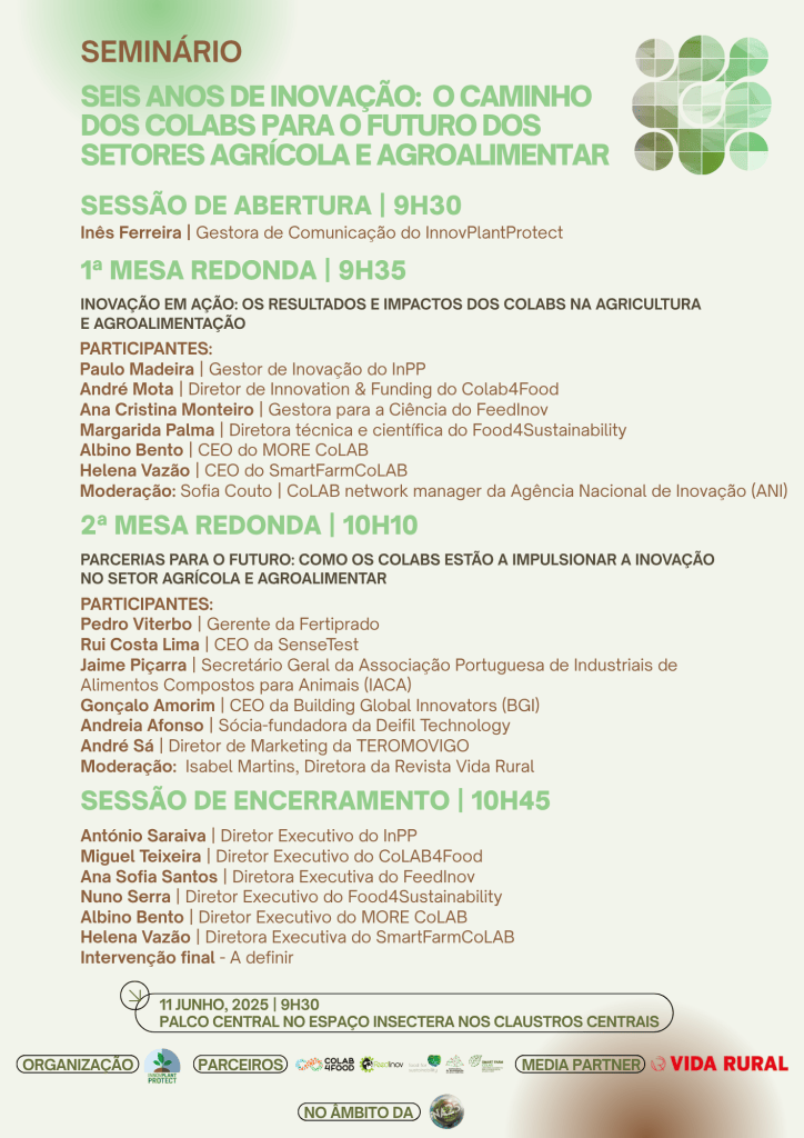 On June 30, InnovPlantProtect (InPP) was present at the meeting “7 years of CoLABs: impacts and perspectives”, which brought together political decision-makers, experts from the Portuguese innovation ecosystem, leaders from different sectors, representatives of public and private entities and the representatives of the 41 Collaborative Laboratories (CoLAB), at the Pavilhão do Conhecimento in Lisbon.